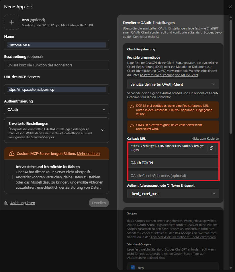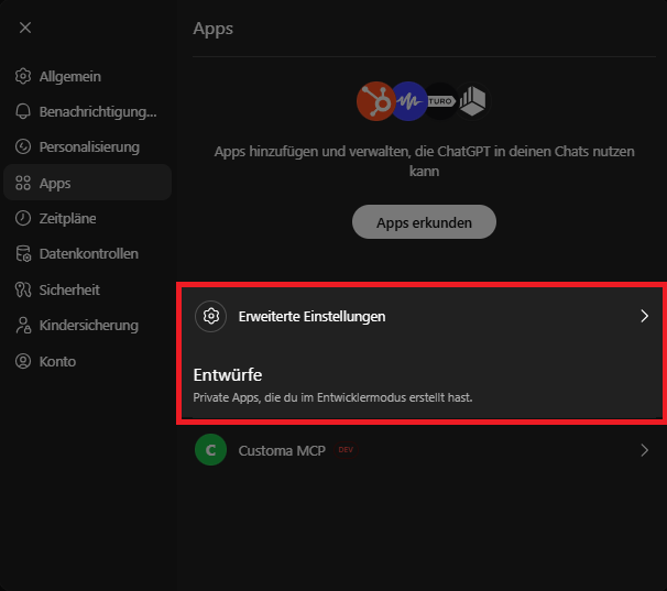 Um ChatGPT mit dem MCP zu verbinden, gehen Sie wie folgt vor: